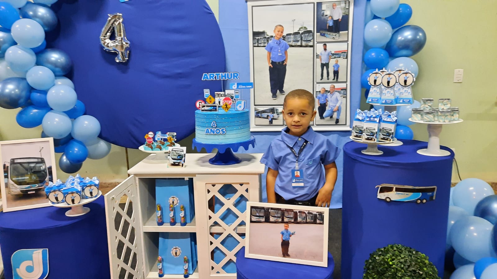 O pequeno Arthur Belshoff de Oliveira, de apenas 4 anos, é apaixonado por ônibus desde os primeiros passos. No último fim de semana, ele realizou o sonho de ter uma festa de aniversário com o tema da Viação Joana Darc, empresa responsável pelo transporte público de Linhares, cidade onde Arthur mora com a família.