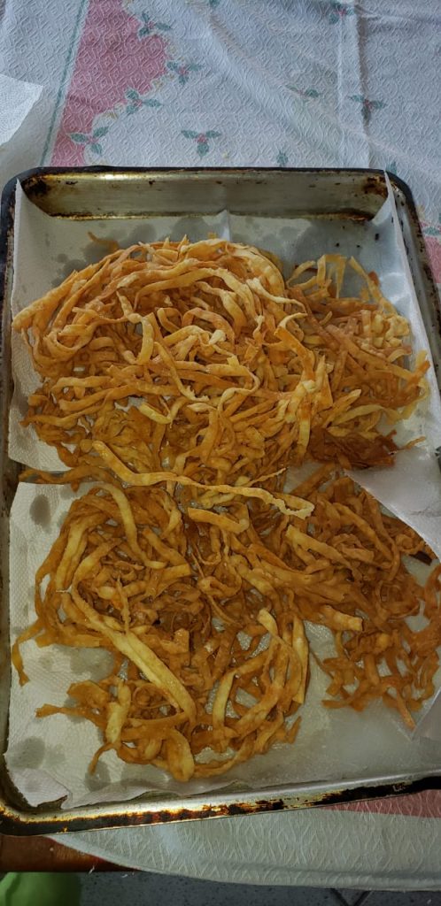 “A Tripinha foi criada por dona Anita em um casamento realizado em Linhares no dia 18 de janeiro de 1964. Ao perceber o número de convidados e que não havia mais recheio para a feitura de salgados, ela rapidamente colocou parte da massa no cilindro, com dispositivo para taiadela, e jogou as fitas numa frigideira com banha de porco quente. Com o sucesso do novo salgadinho, ao ser indagada sobre o nome, dona Anita respondeu com um sorriso maroto: Tripinha! E desde então a receita foi passada de geração em geração e hoje é vendida no comércio regional. Muitas famílias vivem de sua fabricação”, destacou Durão.